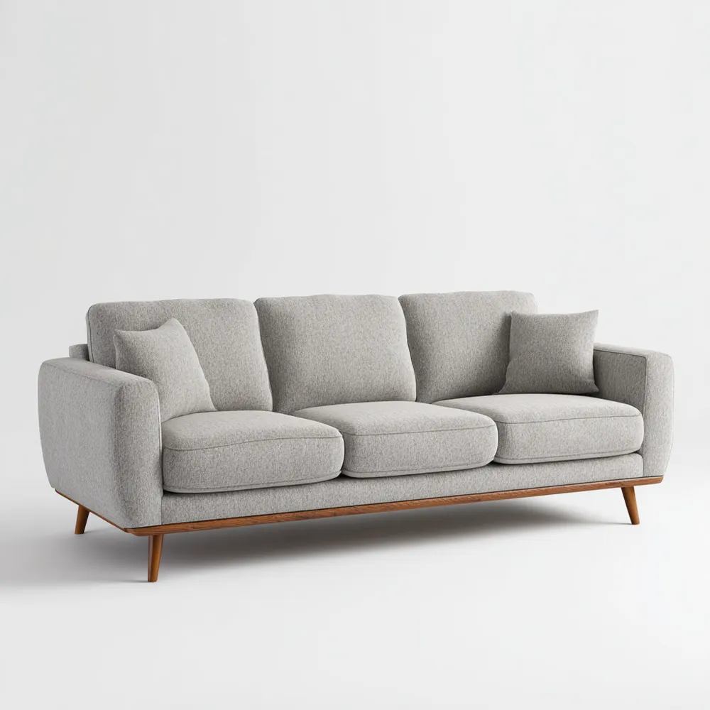 ProduktbeschreibungDas elegante 3-Sitzer-Sofa im skandinavischen Design bietet sowohl Stil als auch Komfort. Perfekt für moderne Wohnzimmer, die ein subtiles Statement setzen möchten.