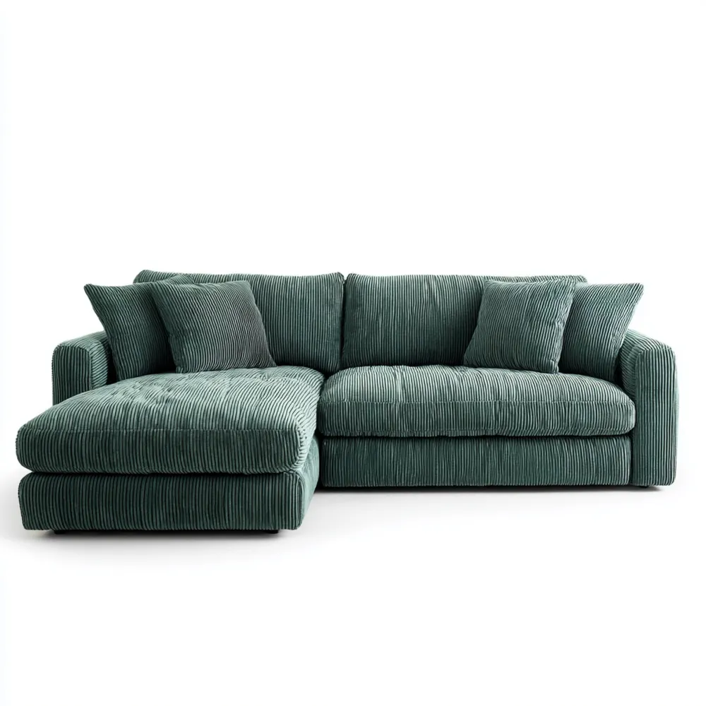 Material und VerarbeitungHergestellt aus hochwertigem Breitcord-Stoff in einem ansprechenden Grünton, bietet dieses Sofa sowohl Langlebigkeit als auch eine weiche Haptik.