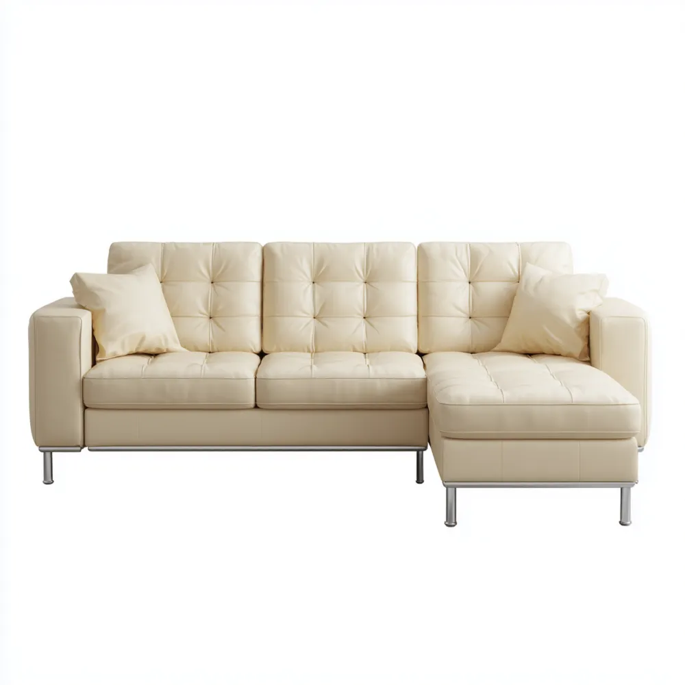 Material und VerarbeitungGefertigt aus hochwertigem Kunstleder in Creme, bietet dieses Sofa eine langlebige und pflegeleichte Oberfläche.