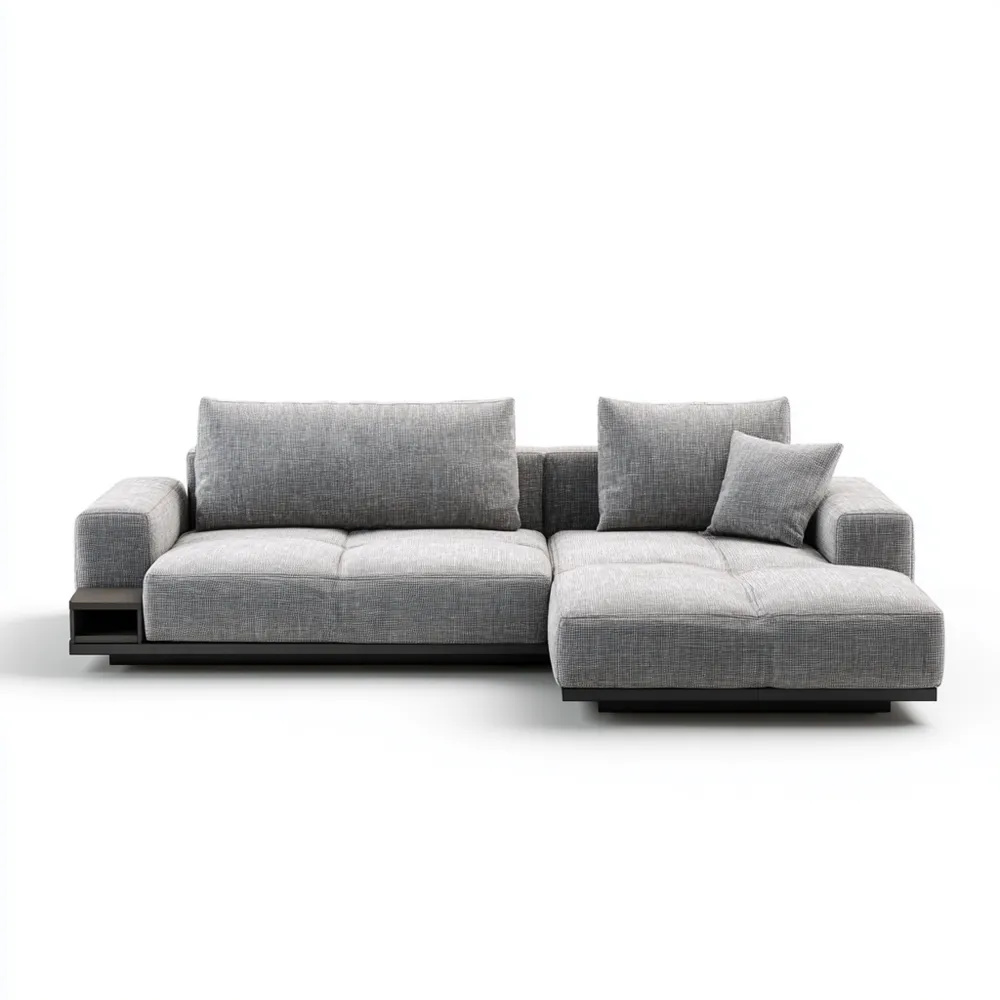 ProduktbeschreibungDieses moderne Ecksofa bietet eine stilvolle und komfortable Sitzgelegenheit für Ihr Zuhause. Mit seinem eleganten Design fügt es sich nahtlos in verschiedene Wohnstile ein.