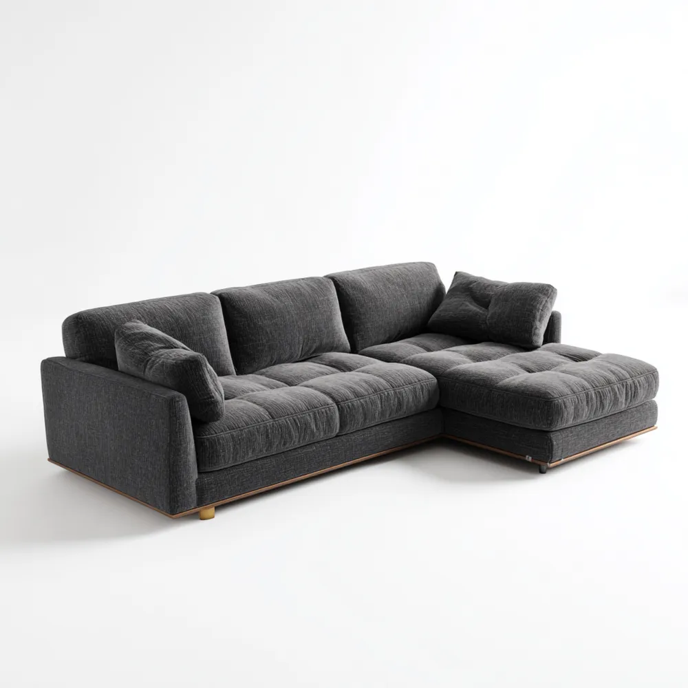 Material und VerarbeitungGefertigt aus hochwertigem Stoff in Dunkelgrau, zeichnet sich das Sofa durch seine Langlebigkeit und Pflegeleichtigkeit aus.